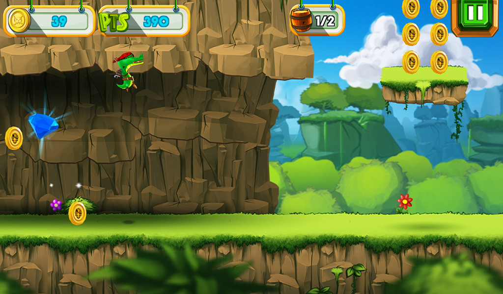 Run, jump, bounce on enemies and fly as you help the Croc Pirate get through the jungle. Keep full control with highly responsive single-finger tap and swipe controls. A highly dynamic game engine which provides more than 120 leves and 6 worlds. Challenge yourself and friends.